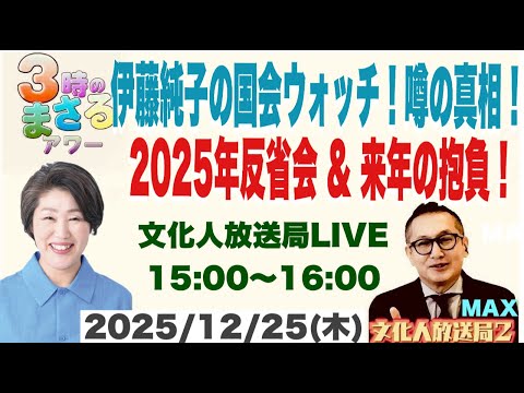 🔵【伊藤純子の国会ウォッチ!噂の真相!】2025年反省会 & 来年の抱負!…他 2025/12/25(木)文化人放送局LIVE 15:00~16:...