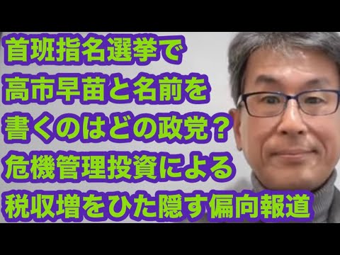 🔵首班指名選挙で高市早苗と名前を書くのはどの政党?危機管理投資で税収増を隠す偏向報道